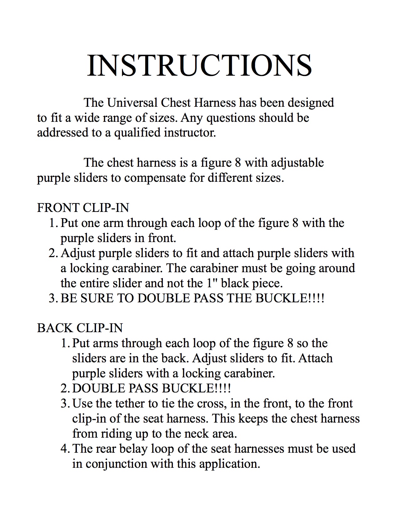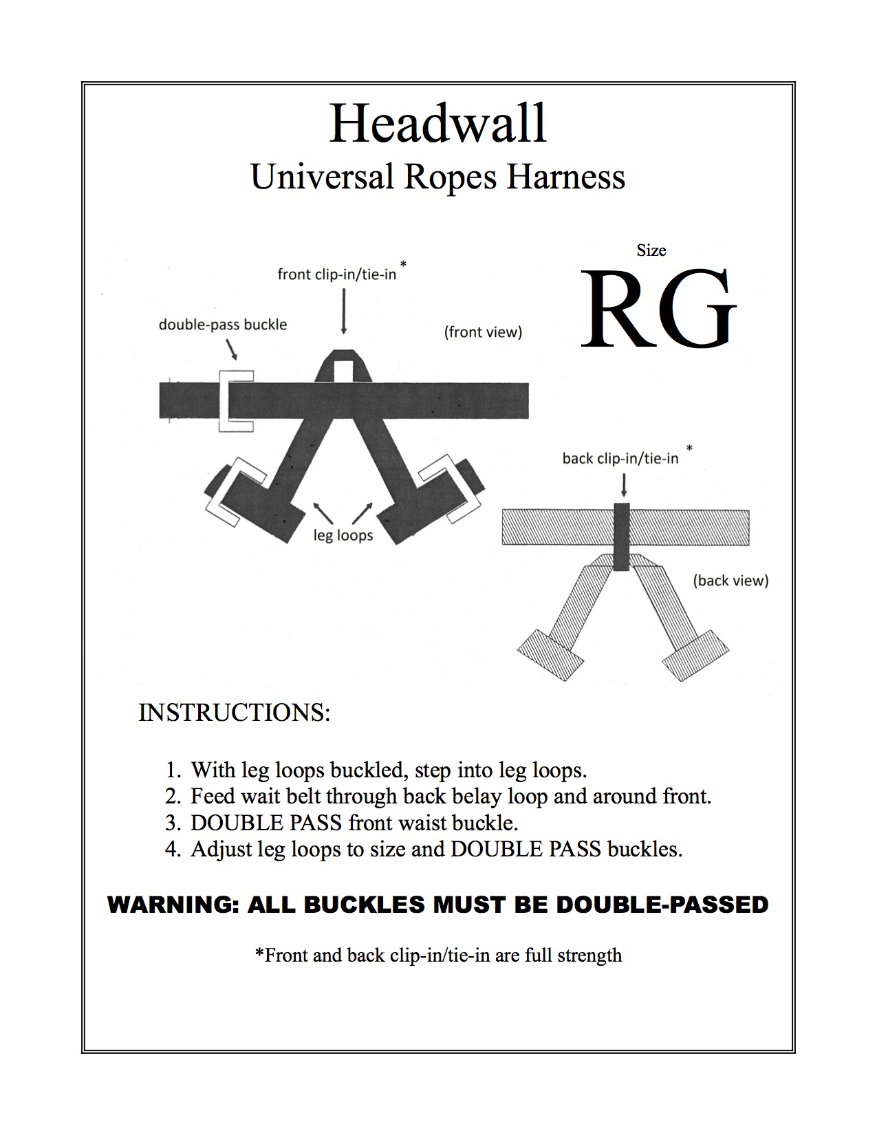 The newest and improved sister harness to the Universal Ropes Course Harness, the EZ is designed for the perfect balance between performance effectiveness and ease of use. With a double buckle system that allows tightening without release, all that is required to put on the harness is the pulling waistbelt and leg loop slack ends. THIS HARNESS SIGNIFICANTLY EXCEEDS HEADWALL HARNESSES STRESS STANDARD.